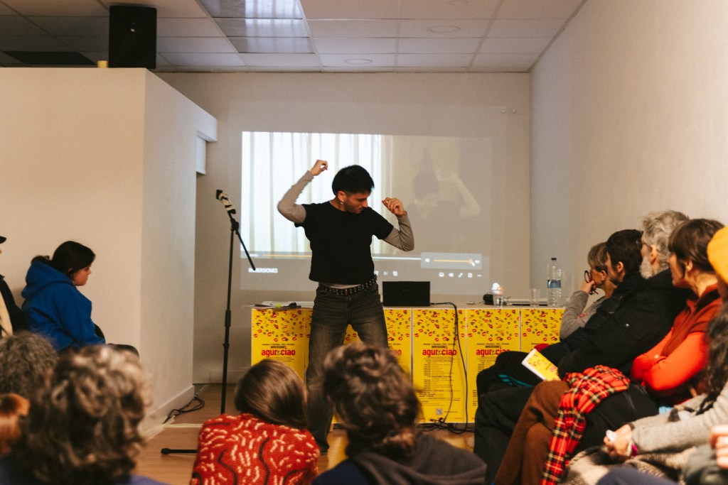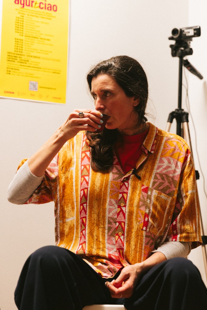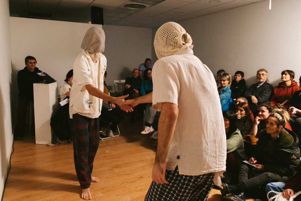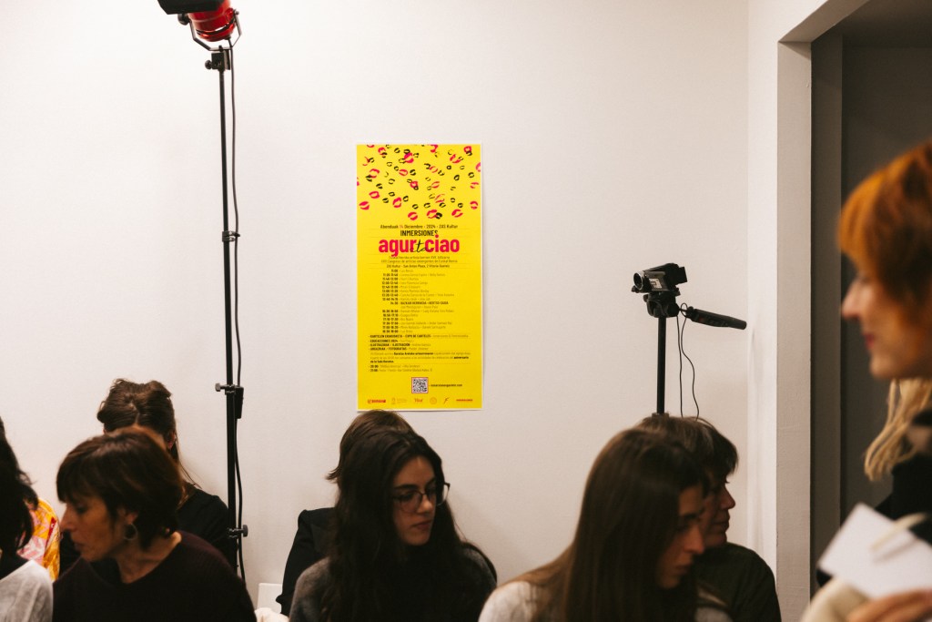 Para el cierre del festival en Inmersiones compartiré lo que ha sido mi propuesta para agur eta ciao, la cual que se ha ido sucediendo desde el 20 de noviembre durante todas las actividades de Feministaldia en Donosti. La propuesta es una acción basada en un protocolo de saludo, que trata de poner en práctica el hola y el adiós que anuncia el festival, haciendo del saludo un reconocimiento a todas las personas que os habéis encontrado con/en este agur eta ciao, desde su inicio hasta su final.