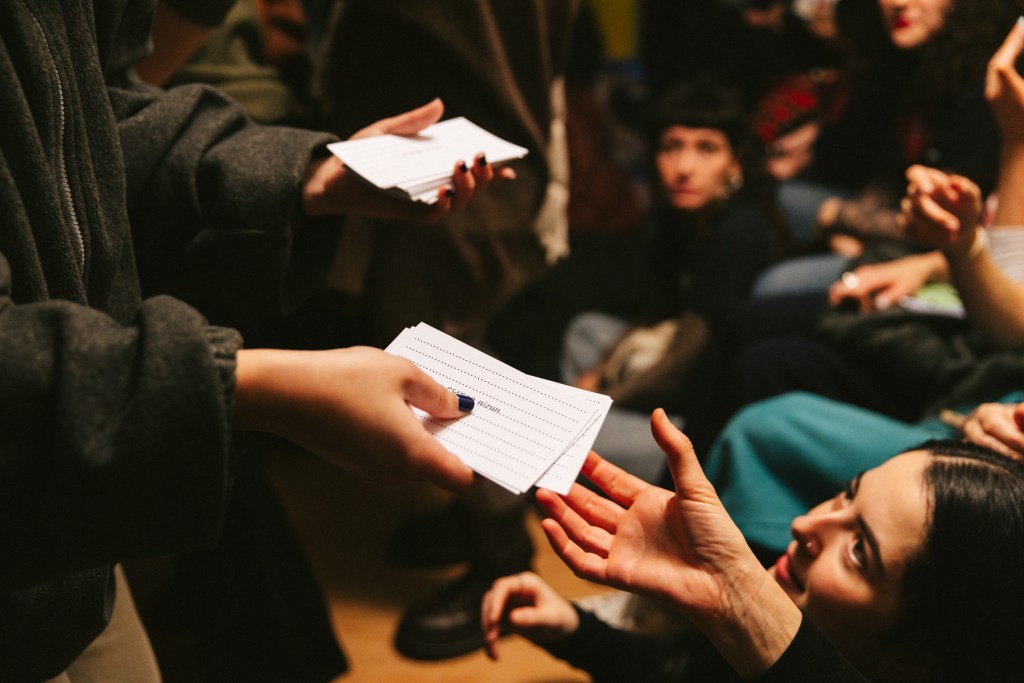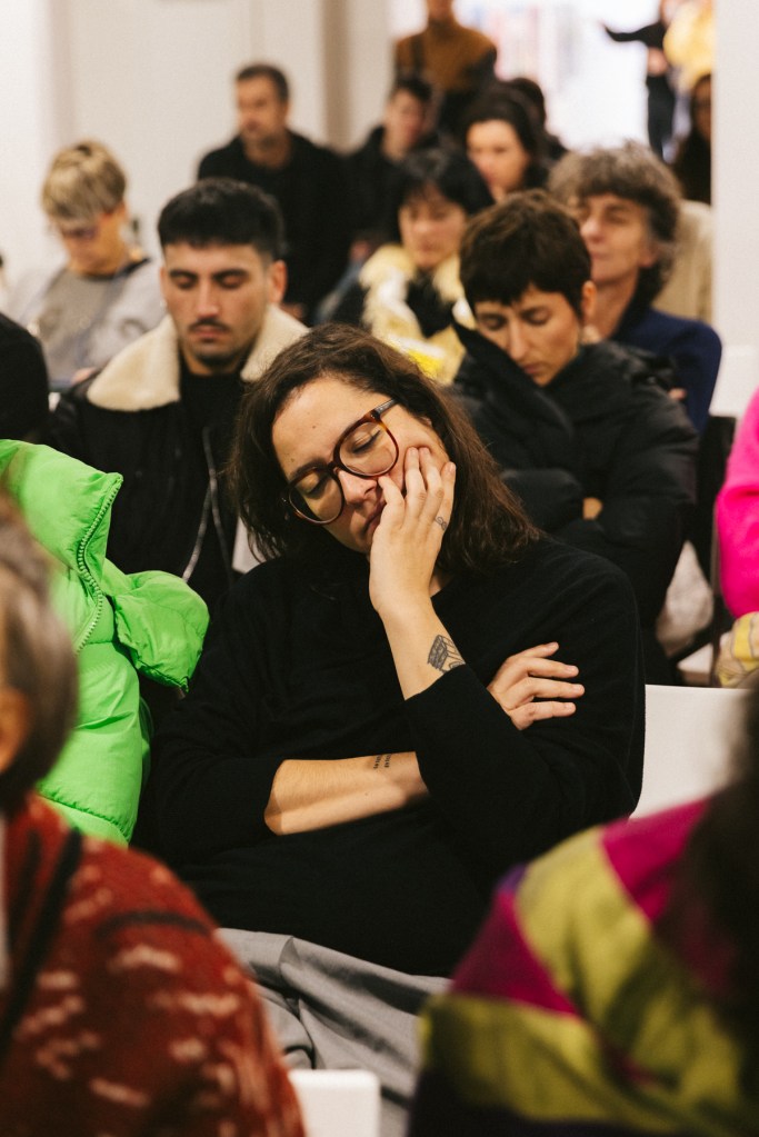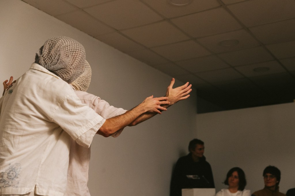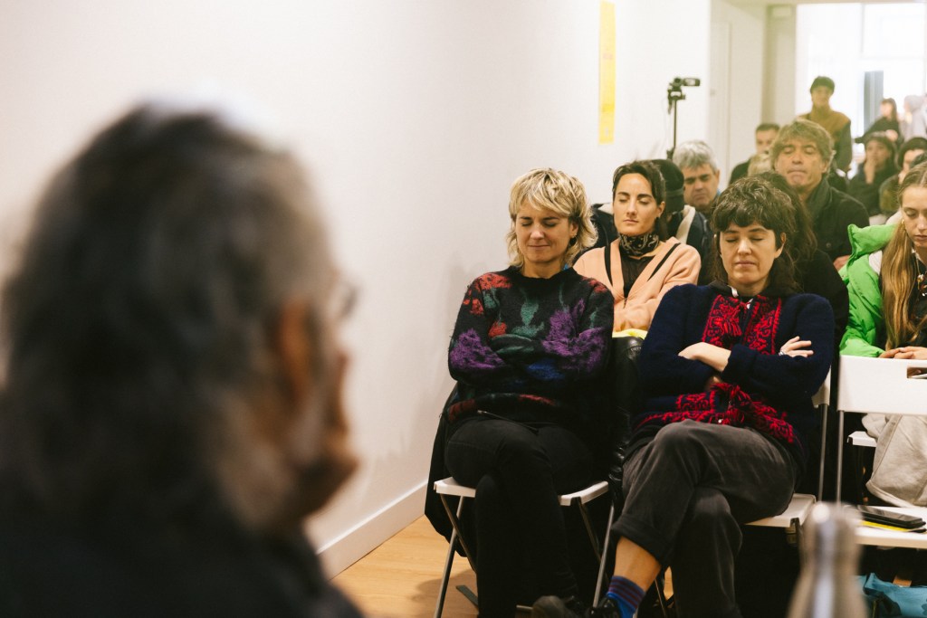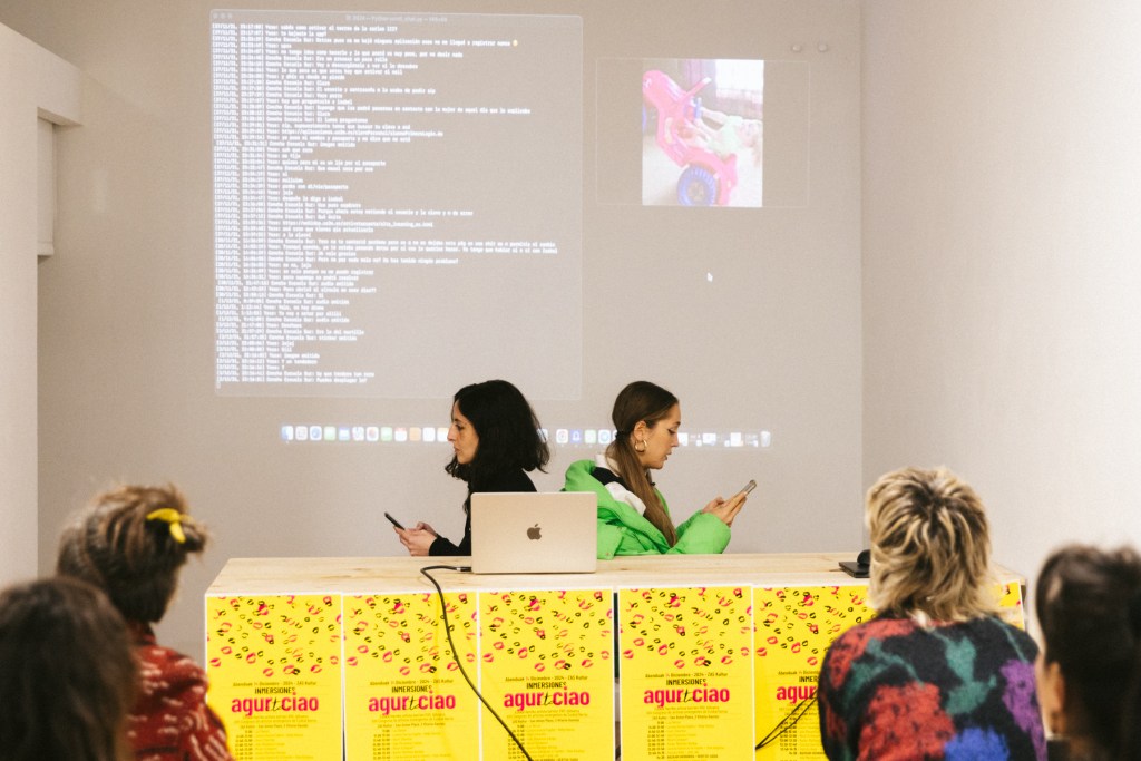 Para el cierre del festival en Inmersiones compartiré lo que ha sido mi propuesta para agur eta ciao, la cual que se ha ido sucediendo desde el 20 de noviembre durante todas las actividades de Feministaldia en Donosti. La propuesta es una acción basada en un protocolo de saludo, que trata de poner en práctica el hola y el adiós que anuncia el festival, haciendo del saludo un reconocimiento a todas las personas que os habéis encontrado con/en este agur eta ciao, desde su inicio hasta su final.