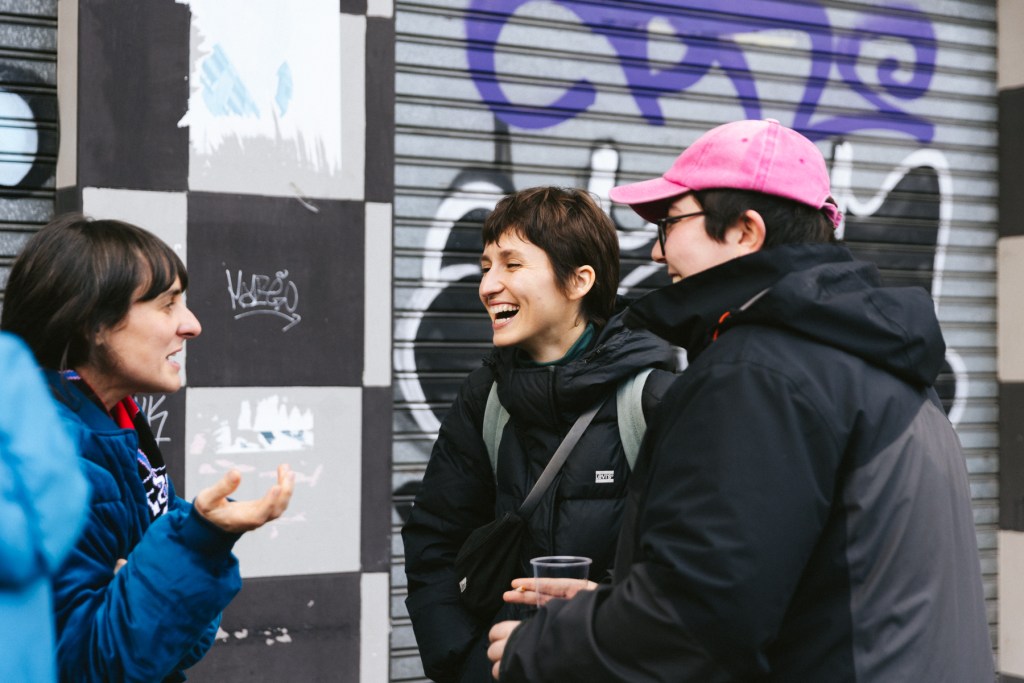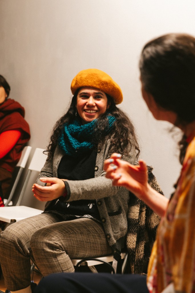Lady: No es tanto que las mujeres se acercan sino que yo las encuentro. Yo me considero una persona muy activa en los espacios de participación de la ciudad, para entender lo que sucede en la ciudad. Como mujer migrada, una de las cosas que una sufre es nacer desde cero pero con diez y ocho años. Yo perdí todos los espacios culturales y las amistades que yo tenía en Colombia. Aquí tuve que volver a entender dónde la gente se junta a ver cine independiente, dónde la gente se junta a hacer teatro, etc. Poder acercarme a esos espacios fue como recuperar aquello que había perdido en mi proceso migratorio. Por eso estoy metida en todas las cosas que me interesan, por eso estoy aquí hoy.