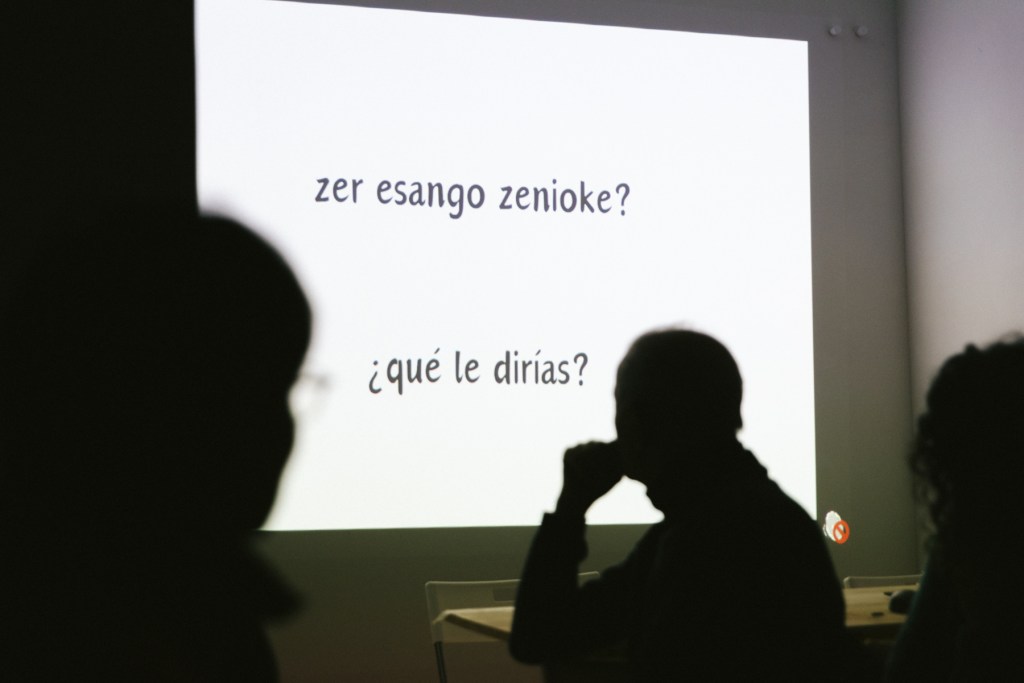 Lady: Maiz gertatzen da migratzen duzunean. Adibidez, batzuk desberdin mintzatzen hasten dira, eta gaztelaniaz ari direlako “zeta” erabiltzen dute, eta “vosotros” esaten. Batzuek, are gehiago, epaitu egiten naute euskara ikasten hasi naizelako. Migratu batzuek esaten didate: “espainiarra zarela uste duzu, edo euskalduna zarela uste duzu”. Pertsonalki, nik “vosotros” erabiltzen badut, eta ez “ustedes”, lanagatik da: hezkuntza-kontuetan aritzen naiz, eta jendeak ondo ulertzea nahi dut. Landazuri ikastolan —horra doa nire semea— familien % 90 migratuak gara, eta gehienek ez diote garrantzirik ematen euskararen kontuari. Mujeres Wayra elkarteko kideok euskararekin lotutako jarduerak antolatzen ditugu. Hona iritsi nintzenean, polita iruditu zitzaidan hemen daukazuen gauza bat, zeuen kulturarekiko errotuta sentitzen zarete; Kolonbian ez da halakorik gertatzen, kolonbiarrak harro sentitzen dira kolonbiar izateaz, baina jatorrizko herrien harira, jendeak honako hau uste du: zenbat eta “zuriagoa izan, hanbat hobeto, eta ez badaukat hazpegi indigenarik ba hobeto, ze hori beste kategoria bat da”. Hemen oso polita da hori, maitasun hori, erroei eustea. Nahiago nuke kolonizatzaileak Amerikara joan zirenean geure kultura errespetatu izan balute, eta ez balute anputatu, horixe gertatu baitzen azkenean, baina uste dut lan hori egin dezakegula hizkuntzari bizirik irauten laguntzeko.