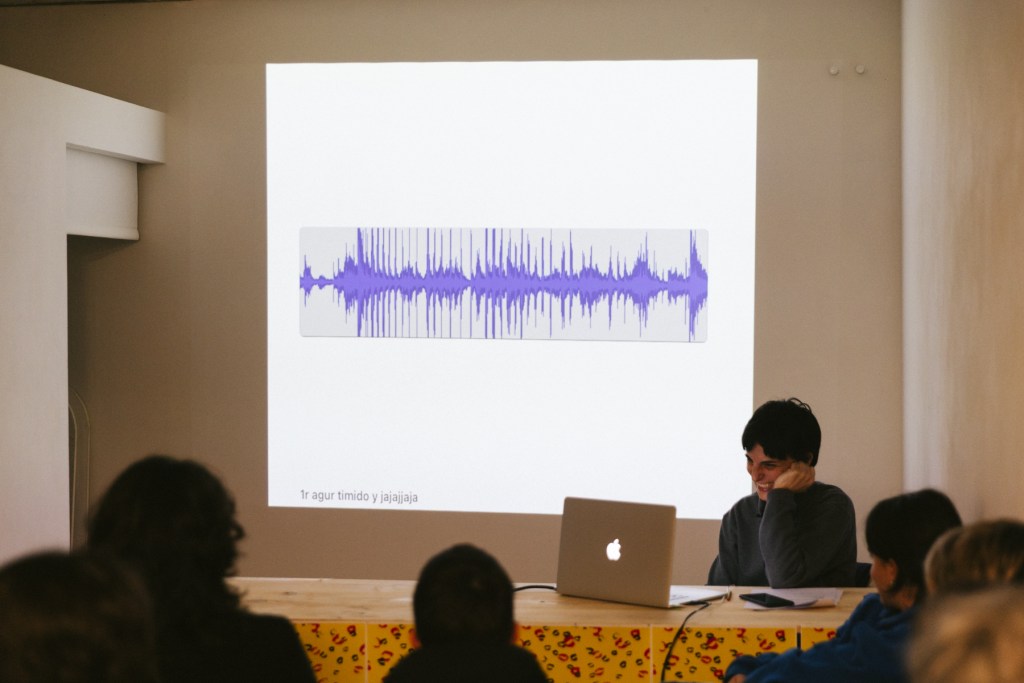 En esta presentación leeré sin leer un texto sobre trabajar en arte, sobre el aula, sobre exponerse, sobre sobre-exponerse. También habrá algo de vergüenza, de no querer despedirme para que la conversación no acabe, de querer que me abracen. Será la segunda vez que leo sin leer el mismo texto frente a una audiencia.