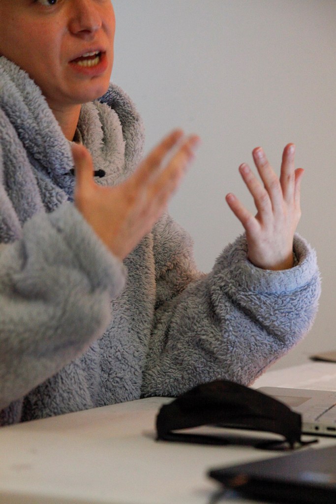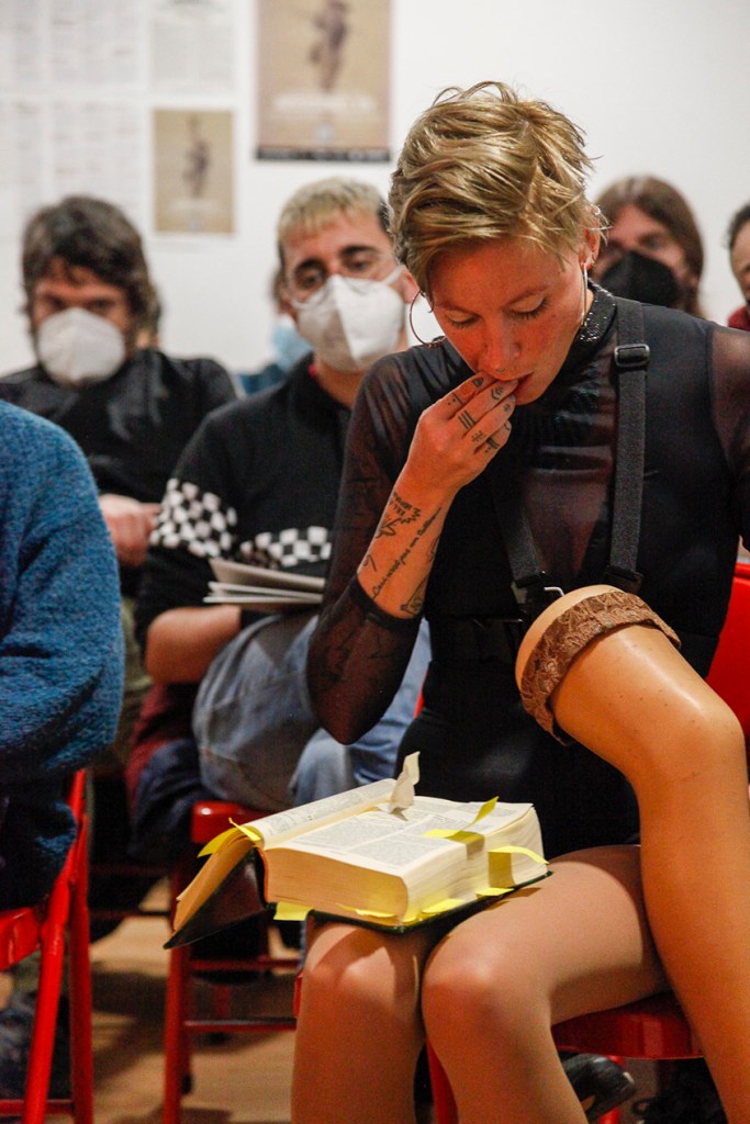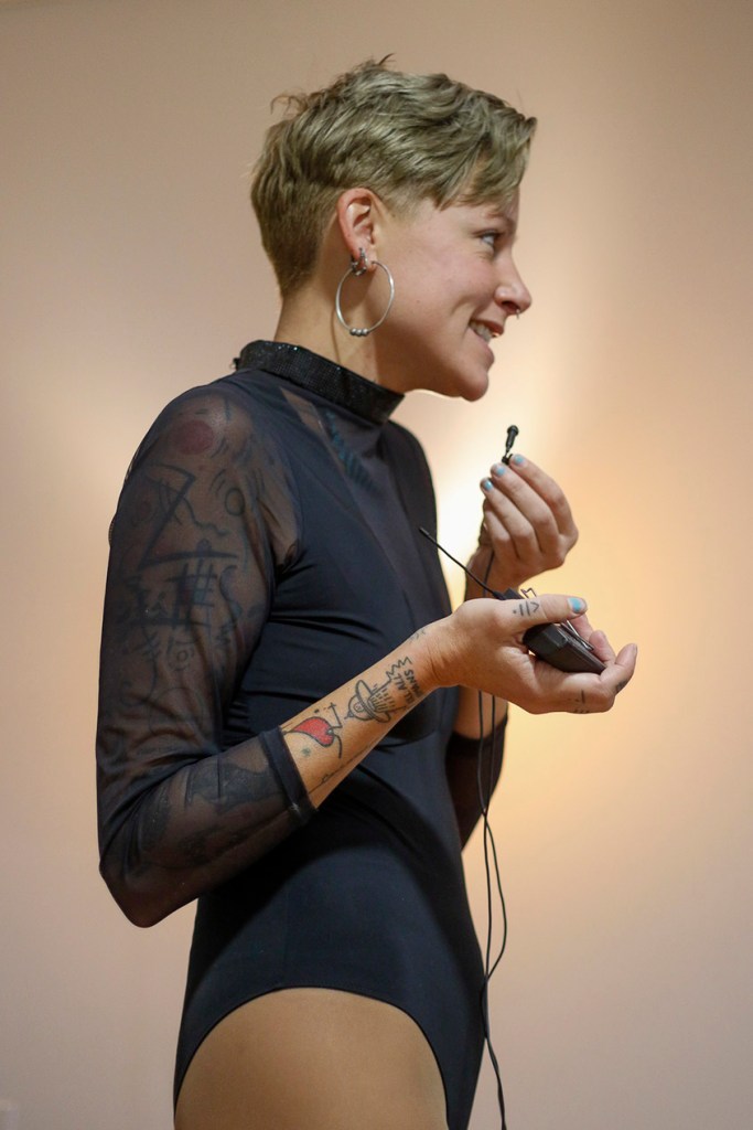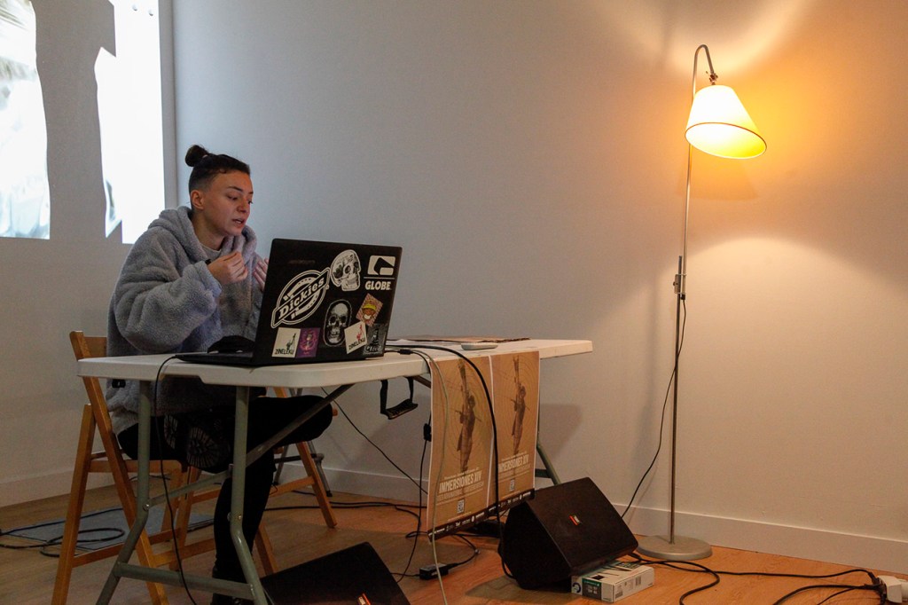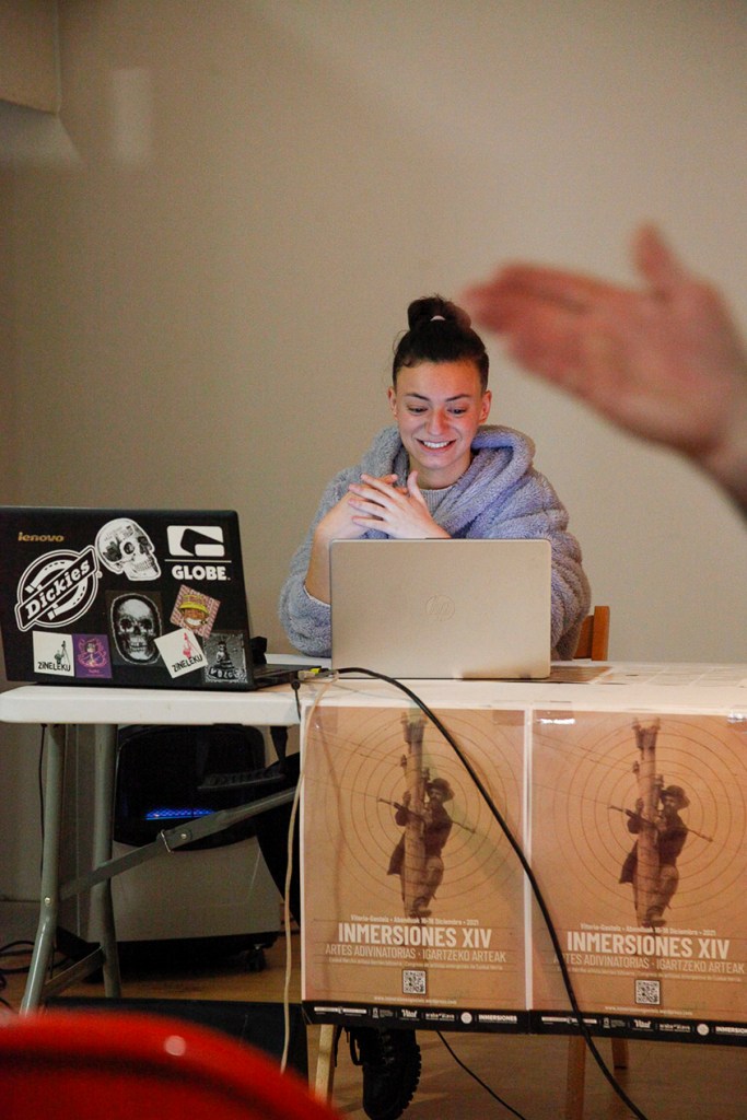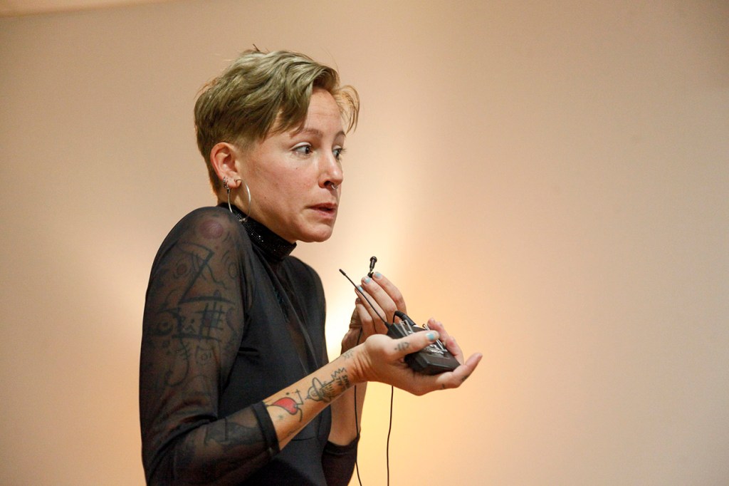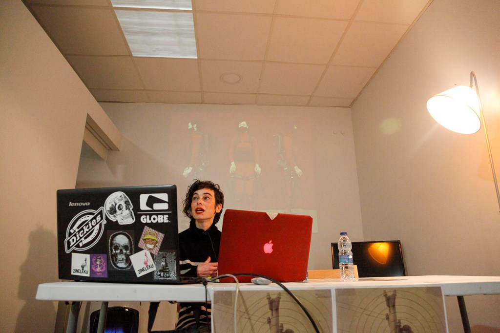 En esta ponencia, la artista hace un recorrido por los múltiples referentes artísticos, fílmicos y musicales, así como toda la investigación en diversas disciplinas (psicología, sociología, antropología…) relativos a su proyecto Futuro perfecto, en el que analiza, desgrana e inventa un sinfín de conceptos asociados a la identidad y reflexiona sobre la construcción social de la misma. A través de lo que denomina ‘experimentos’ (acciones plasmadas de manera artística) y con la ayuda de ciertas prácticas adivinatorias tales como servicios de clarividencia, tarot y quiromancia, construye once posibles relatos (futuros).