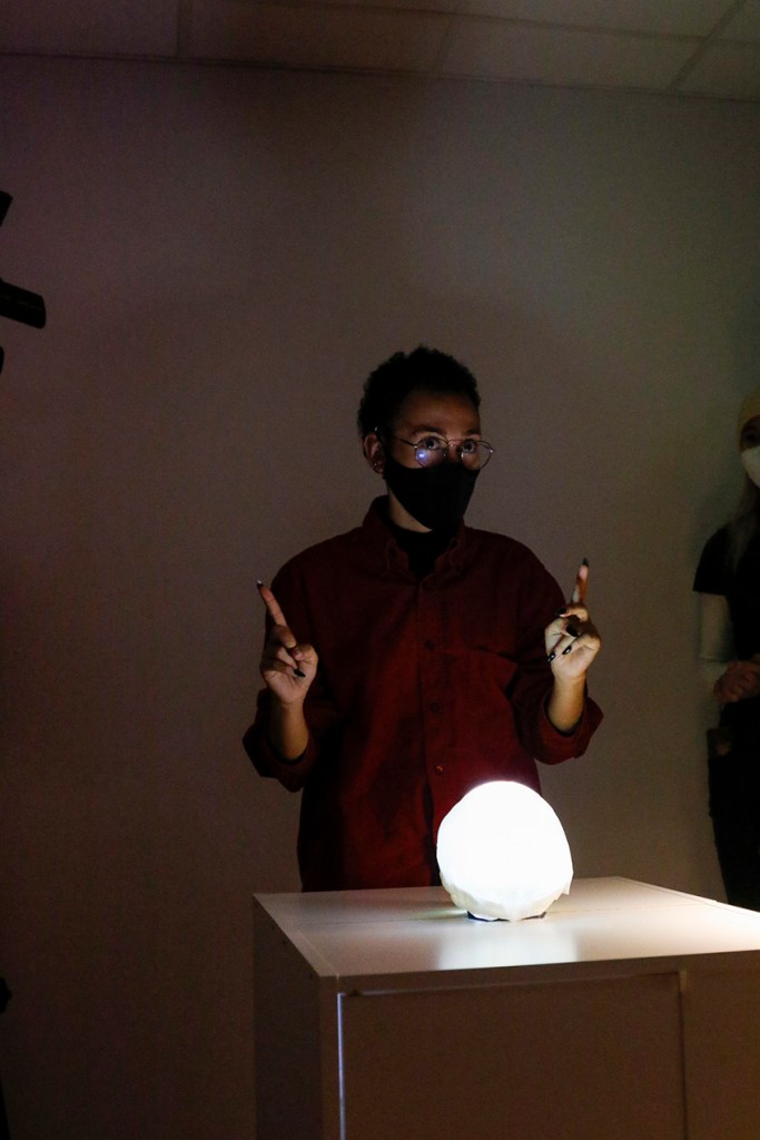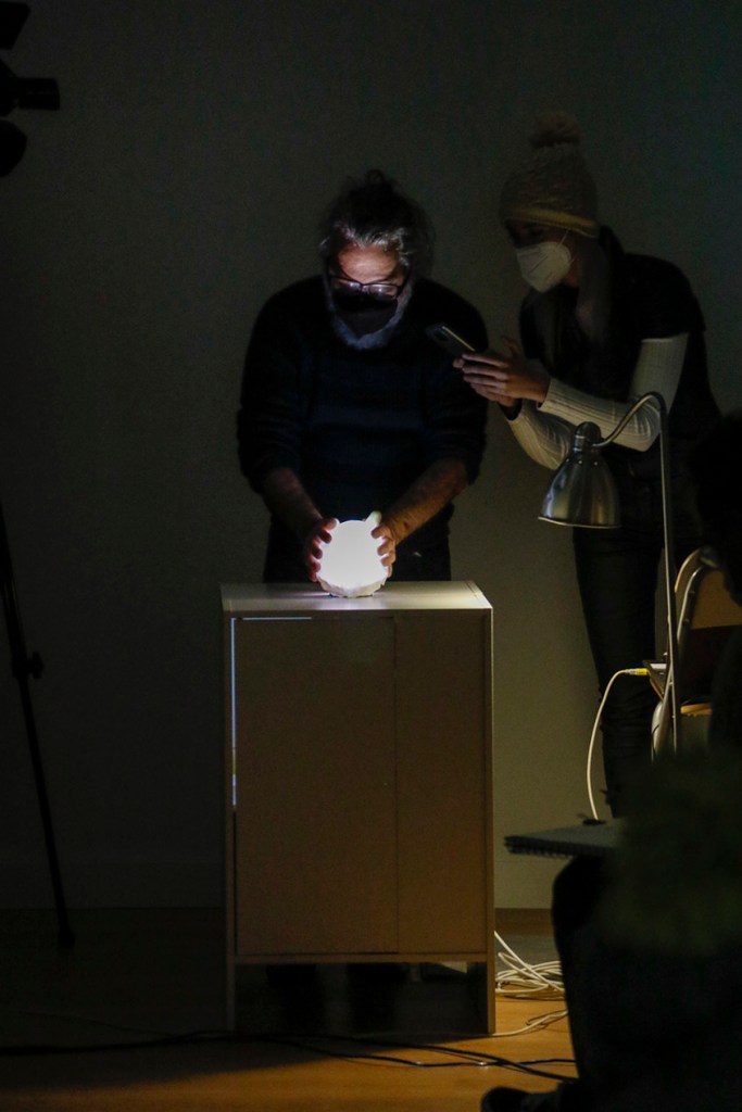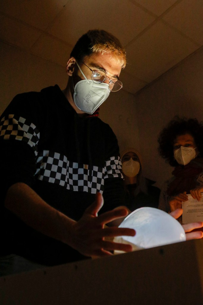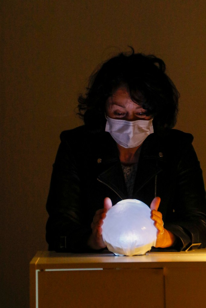 Fisikoki objektu bat aurkituko du, eta bideoarte bat proiektatzen. Pertsonak kontsulta bat egin behar du ozen, eta bere eskuak gainean jarriz, bideoa motelduko du, hura izoztuta geratu arte. Era horretan, irudi finko bat eskuratuko du, haren galderari erantzungo diona.
