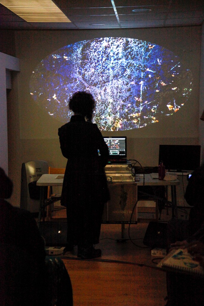 Un relato sonoro-visual experimental en vivo que replantea mitos, historias de ciencia ficción y escritos ecofeministas en búsqueda de nuevas perspectivas de vivir, amar y morir en un planeta herido. Una obra sonora original compuesta de grabaciones de campo y manipulaciones digitales, interpretada en directo con proyecciones de animaciones y videos.