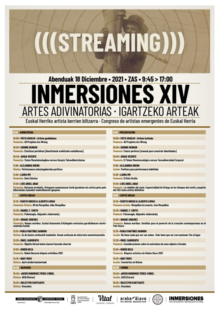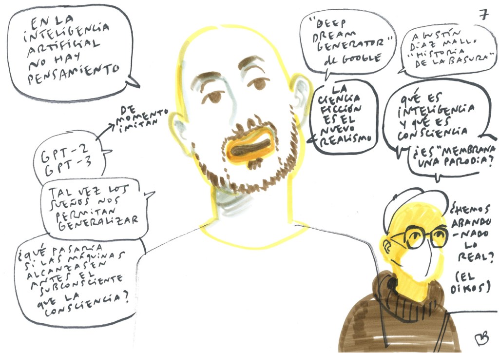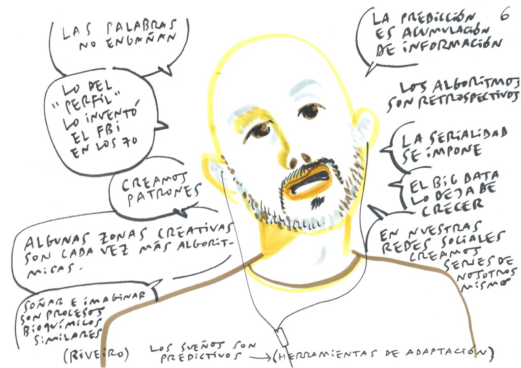 Jorge Carriónek algoritmoei buruz hitz egingo du (aurpegi biko izakitzat, atzerabegirakotzat, aurrerabegirakotzat, oroimentsutzat eta profetikotzat ditu), baita haiei buruz forma enpatiko eta hautemankorren bidez pentsatzeko beharraz ere, distopia momentuka errealitateaz jabetzen ari den garai hauetan.