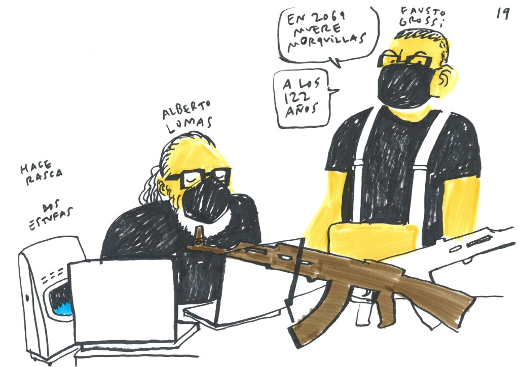 Jugamos con la ficción de que Morquillas muere en el 2069 a la edad de 122 años. Aprovechamos esta situación ficticia para realizar una breve radiografía de la situación del arte vasco contemporáneo.