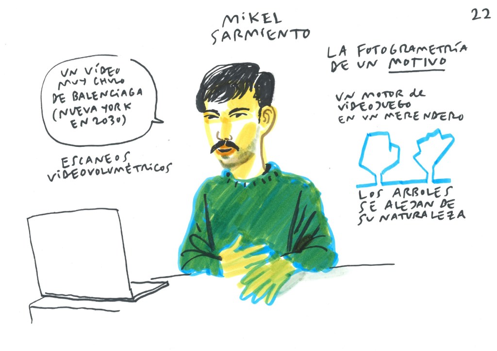 Con este proyecto me centro en algunas cuestiones que tienen que ver con un vídeo de una campaña de Balenciaga y, sobre todo, con un merendero virtual. Ambos son objetos (generados mediante sistemas relacionados con la fotogrametría) hacia los que intento generar distintos acercamientos para esclarecer su condición concreta en el contexto virtual. Me interesa aproximarme a sus cualidades intrínsecas y a su naturaleza, en este caso, a través de su imagen y forma, que son consecuencia directa y propia de sus respectivos procesos de constitución.