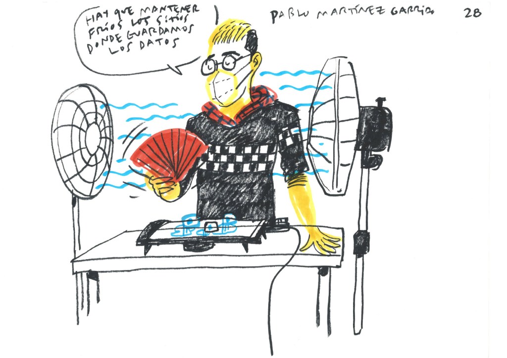 Bakarrik modu bat dago etorkizunean zerbait gertatzeko: ordu arte existitzen jarraitzea. Bestalde, aro digitalean bada dena mutaezin bihurtu denaren ilusio moduko bat. Bada, ezin egiatik urrunago egon. Gure oroitzapenak eta proiektuak gure etxetik urruneko gotorlekuetan biltegiratzen dira ordenagailu handietan. Makina horiek baliabideak irentsi eta beroa sortzen dute, bero handia. Etorkizuna hotzaren baitan dago.